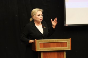 «Дорогие подруги! Сегодня, когда борьба идет не только с нацистским режимом на освобожденных территориях, но и за безопасность и территориальную целостность нашей страны, как никогда актуален девиз Союза женщин «Наша сила - в единстве!». От нашей женской мудрости и спокойствия зависят уверенность и правильность непростых, но необходимых действий, которые требуются для защиты Отечества», – выделила председатель.